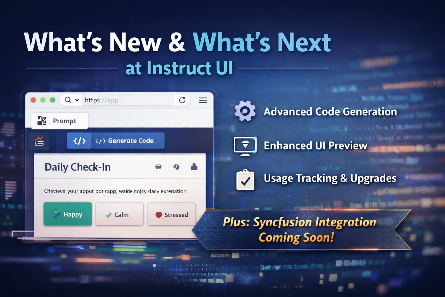 The latest updates to Instruct UI include tool-based code generation, upgraded previewer experience, credits tracking, and model upgrades. Plus, see our new end-to-end demo showing structured prompts to production-ready Blazor UI.